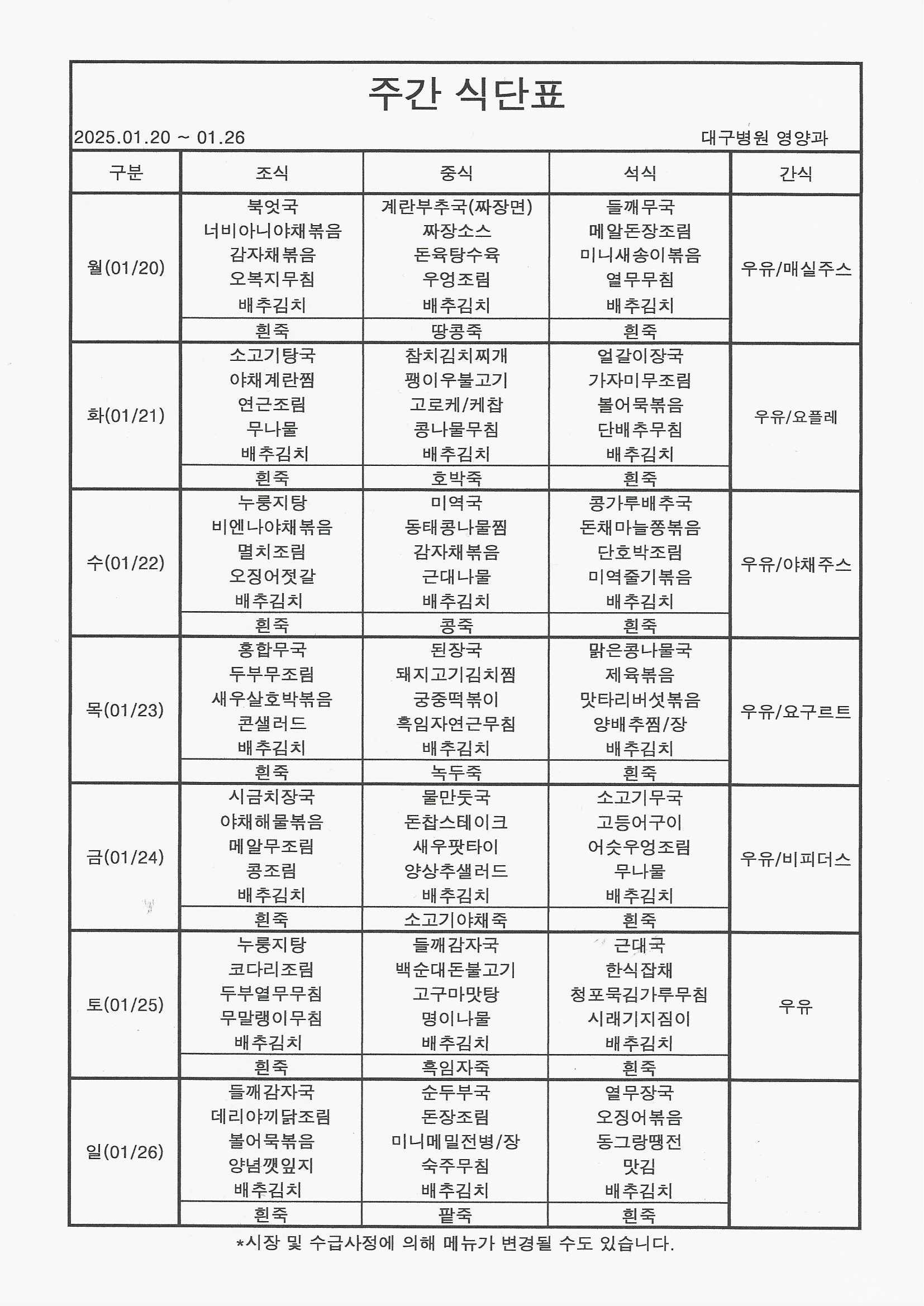 25³â 1/20~1/26 ½Ä´ÜÇ¥