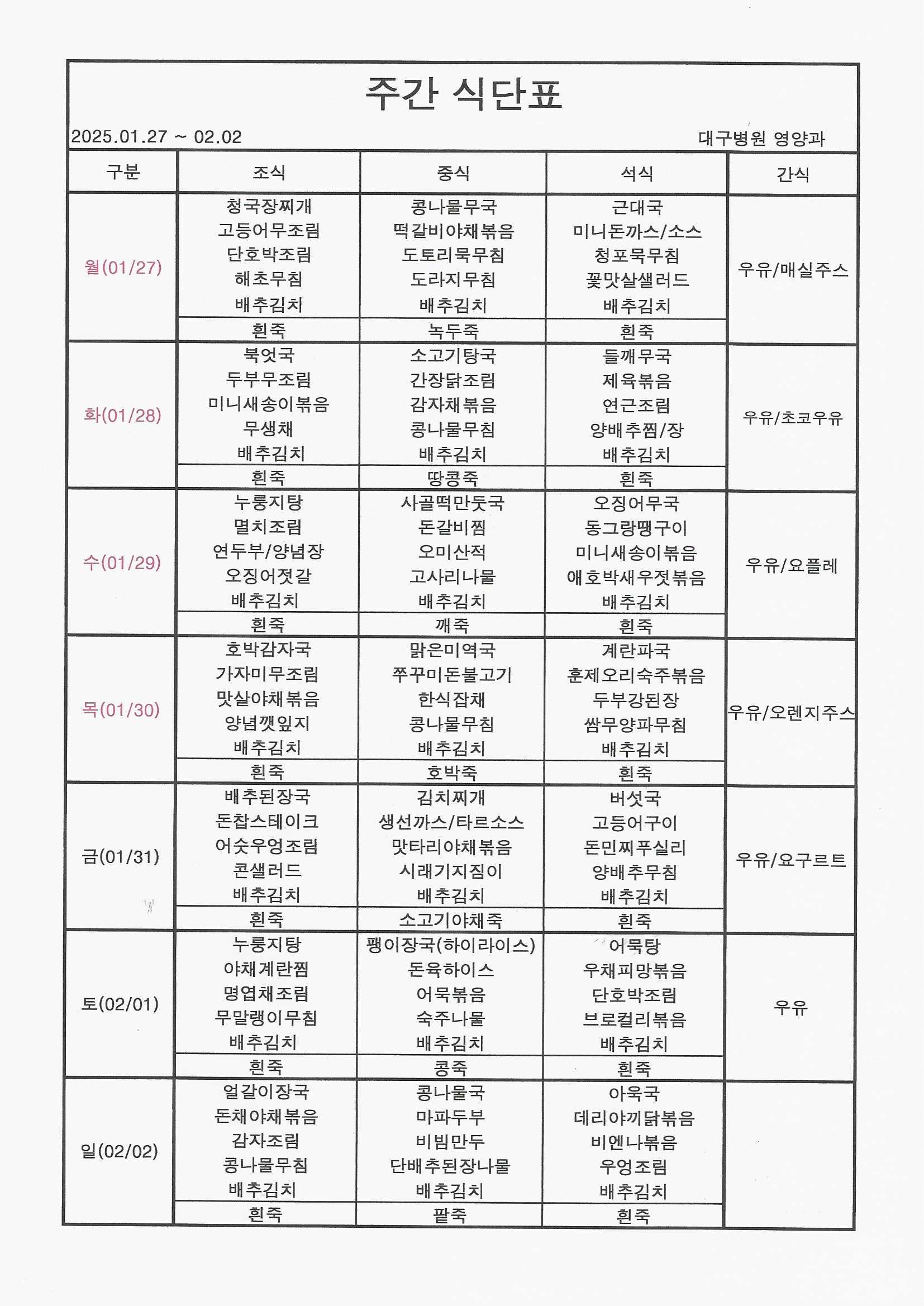 25³â 1/27~2/2 ½Ä´ÜÇ¥