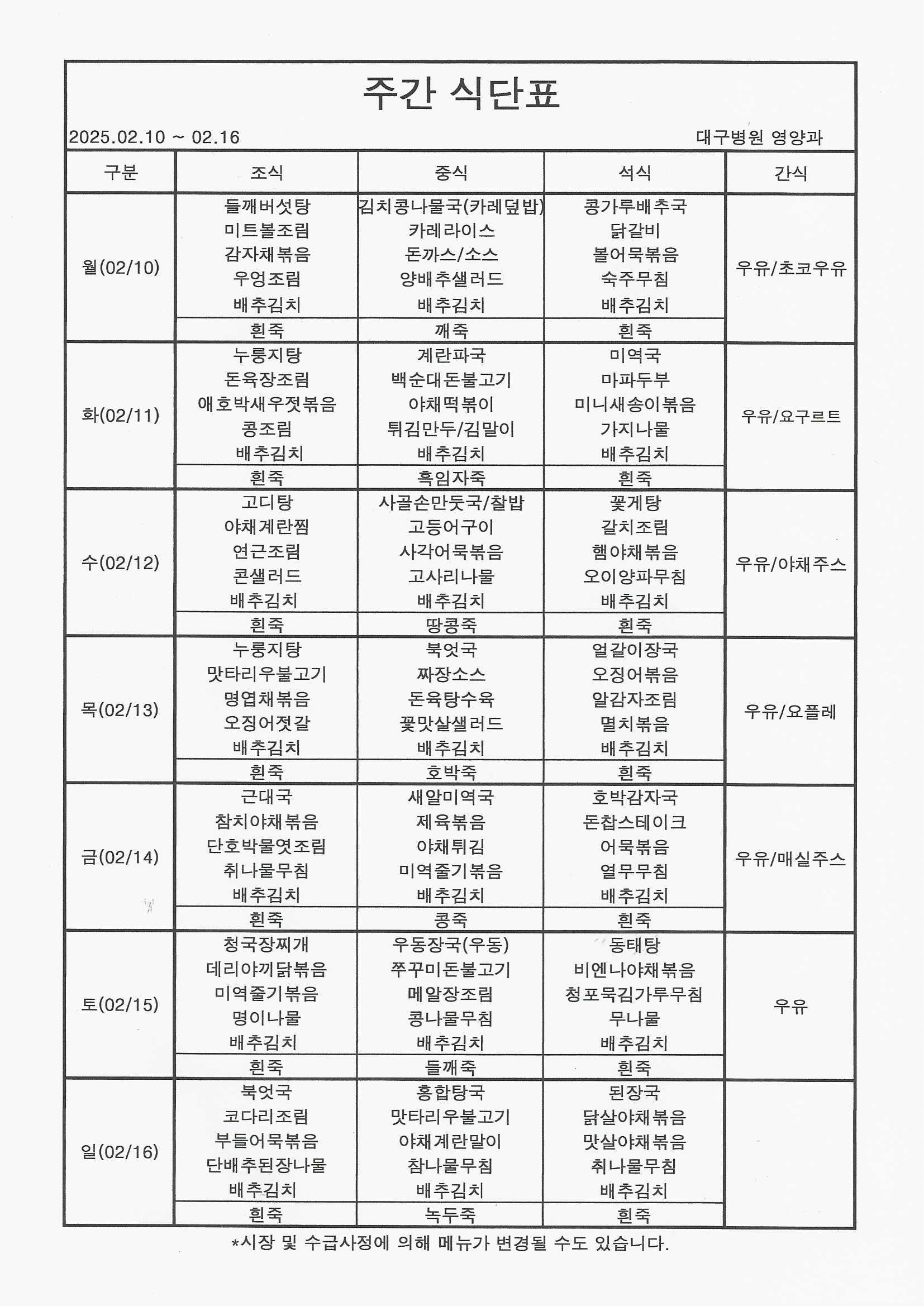 25³â 2/10~2/16 ½Ä´ÜÇ¥