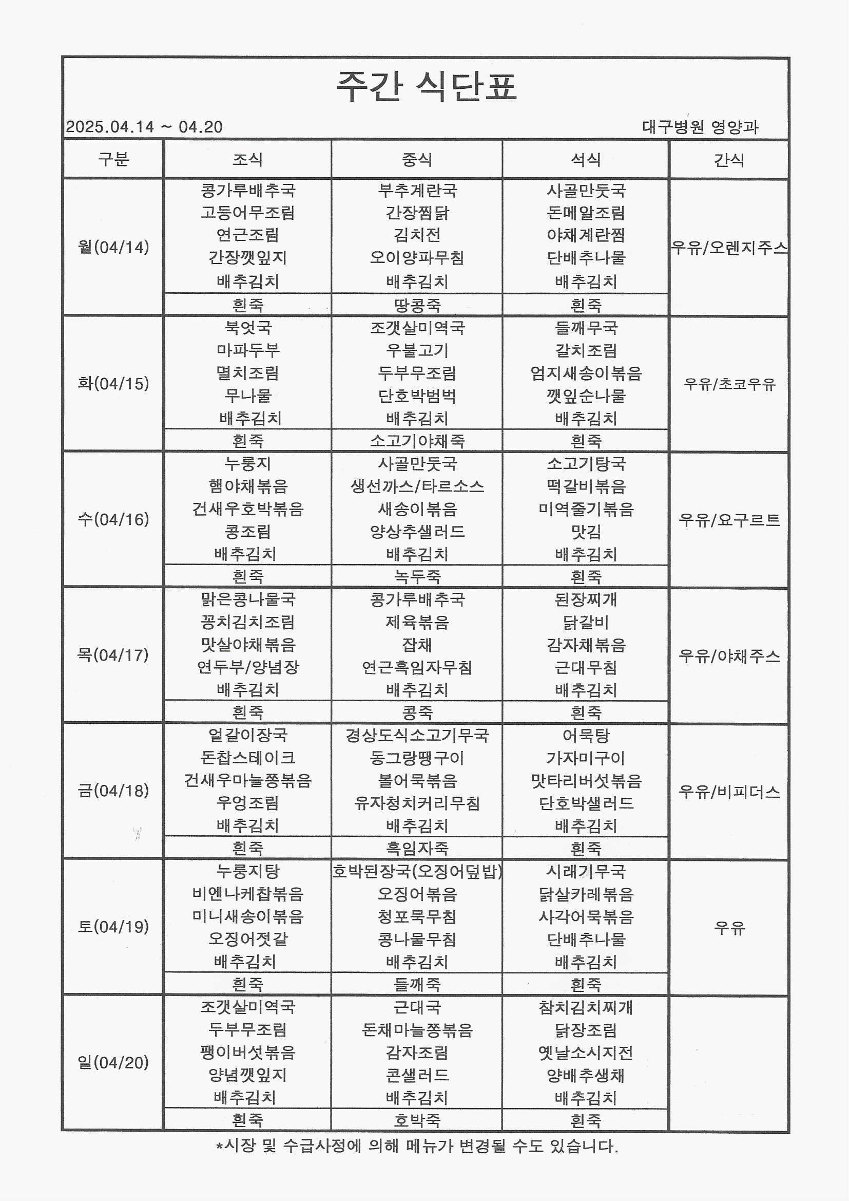 25³â 4/14~4/20 ½Ä´ÜÇ¥