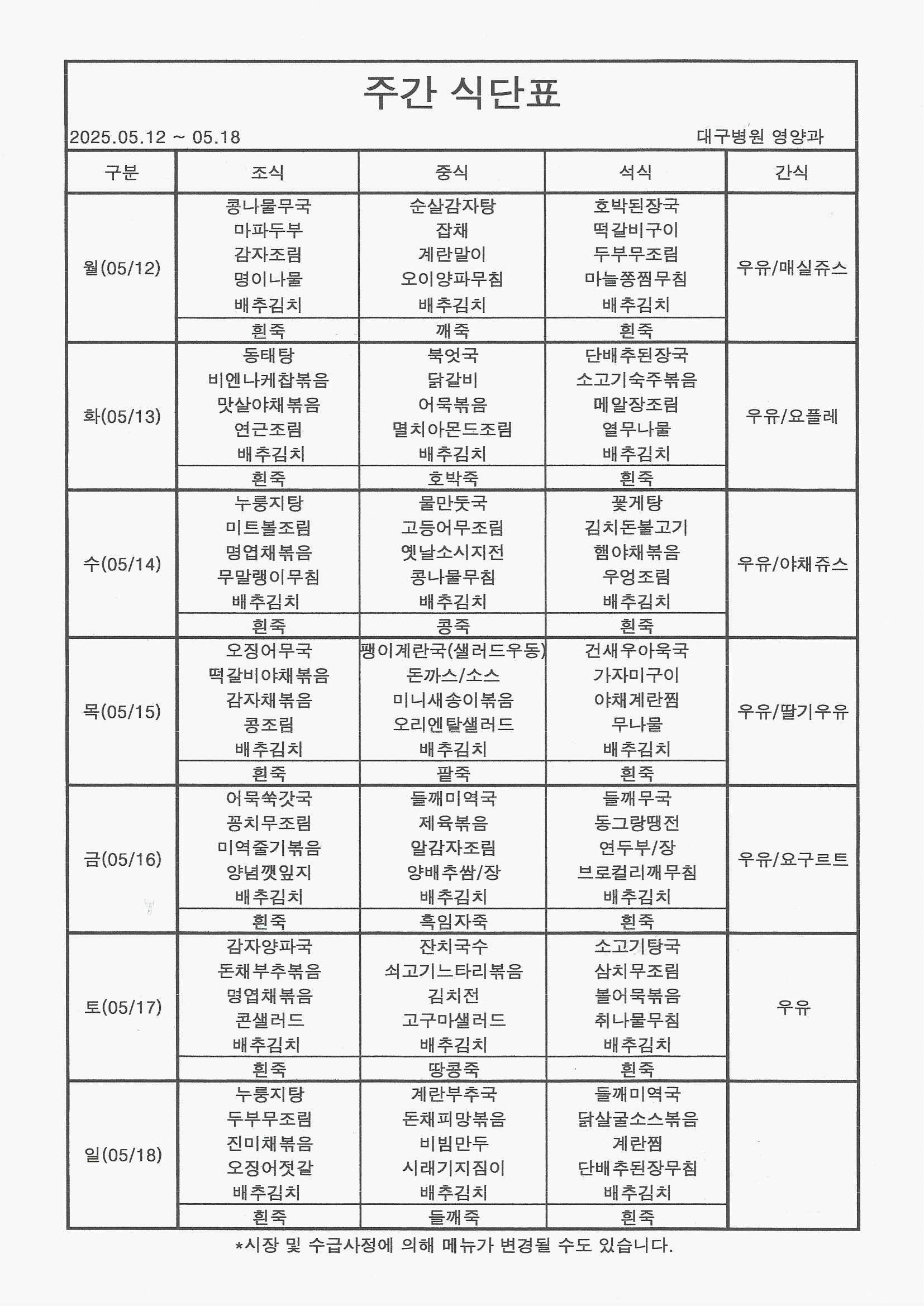 25³â 5/12~5/18 ½Ä´ÜÇ¥