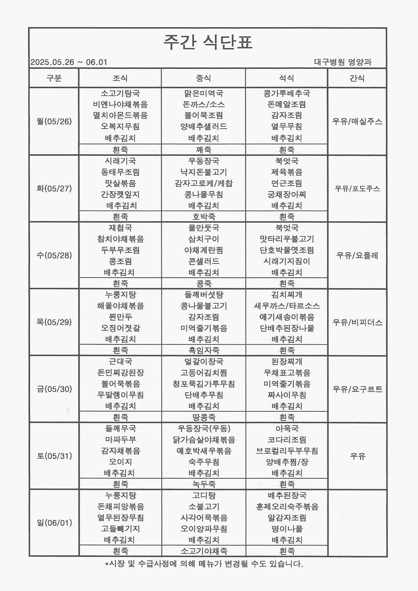 25³â 5/26~6/1 ½Ä´ÜÇ¥