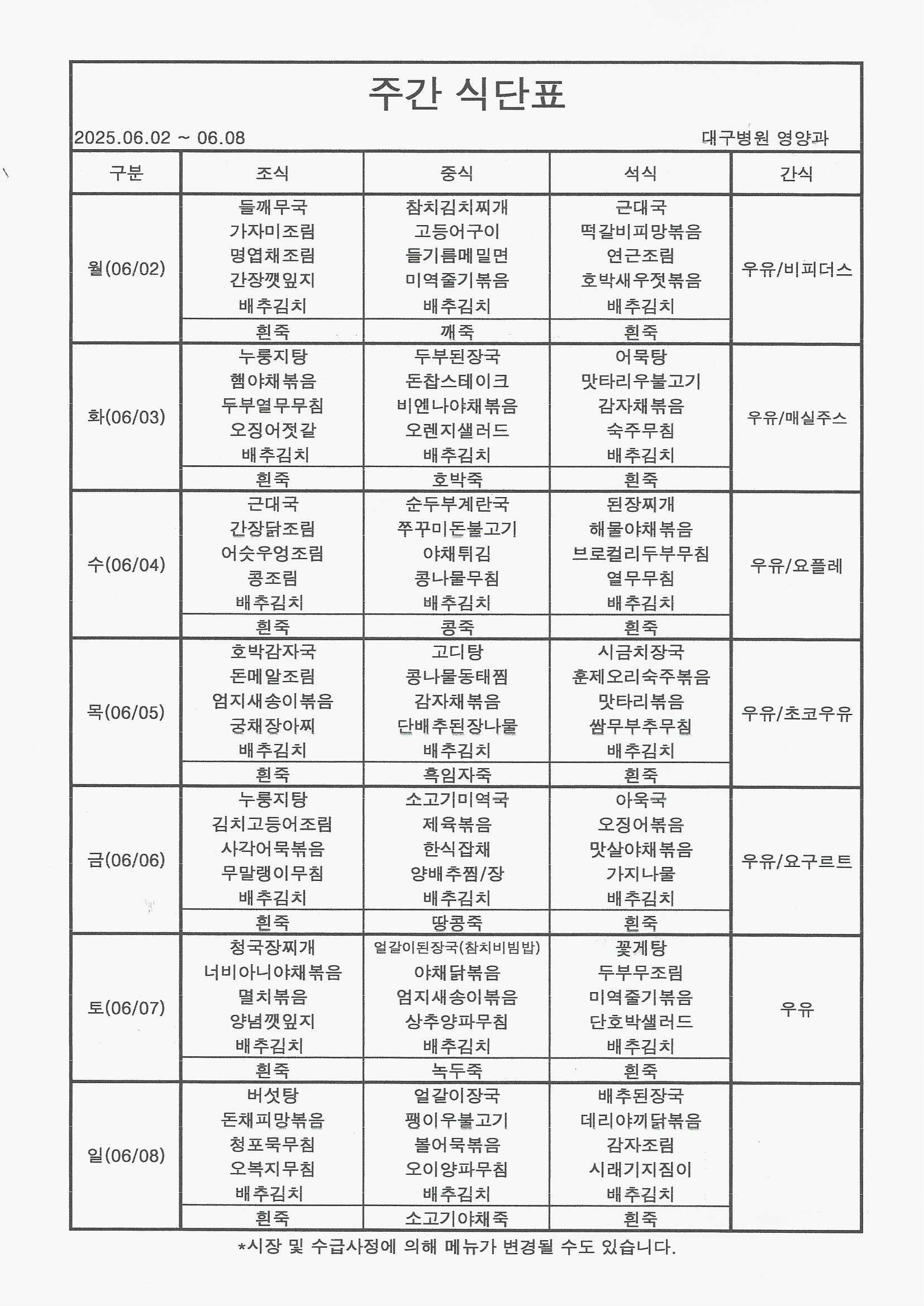 25³â 6/2~6/8 ½Ä´ÜÇ¥