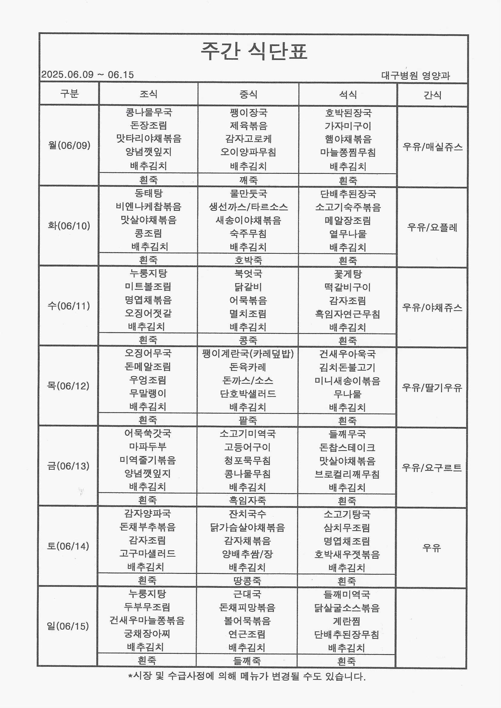 25³â 6/9~6/15 ½Ä´ÜÇ¥