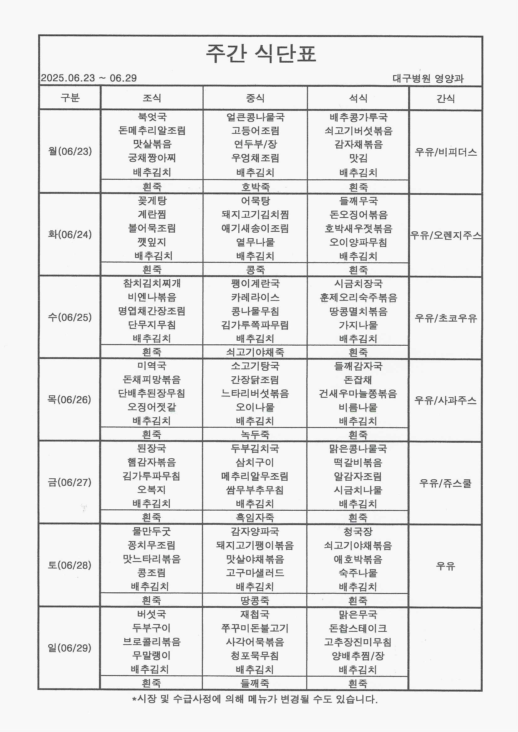 25³â 6/23~6/29 ½Ä´ÜÇ¥