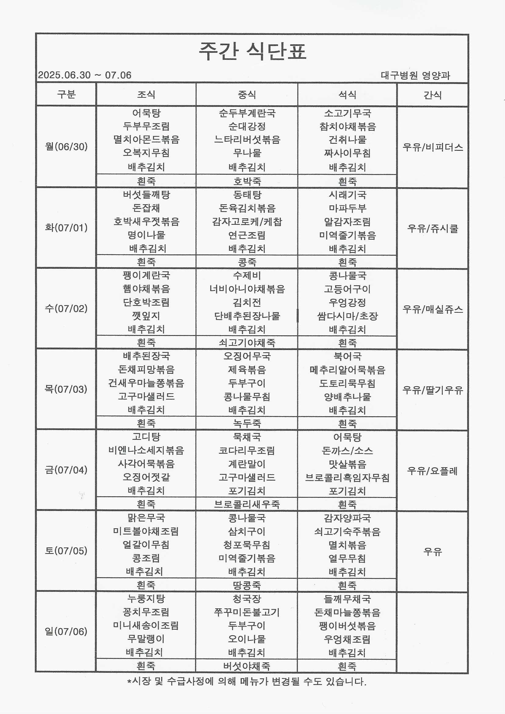 25³â 6/30~7/6 ½Ä´ÜÇ¥