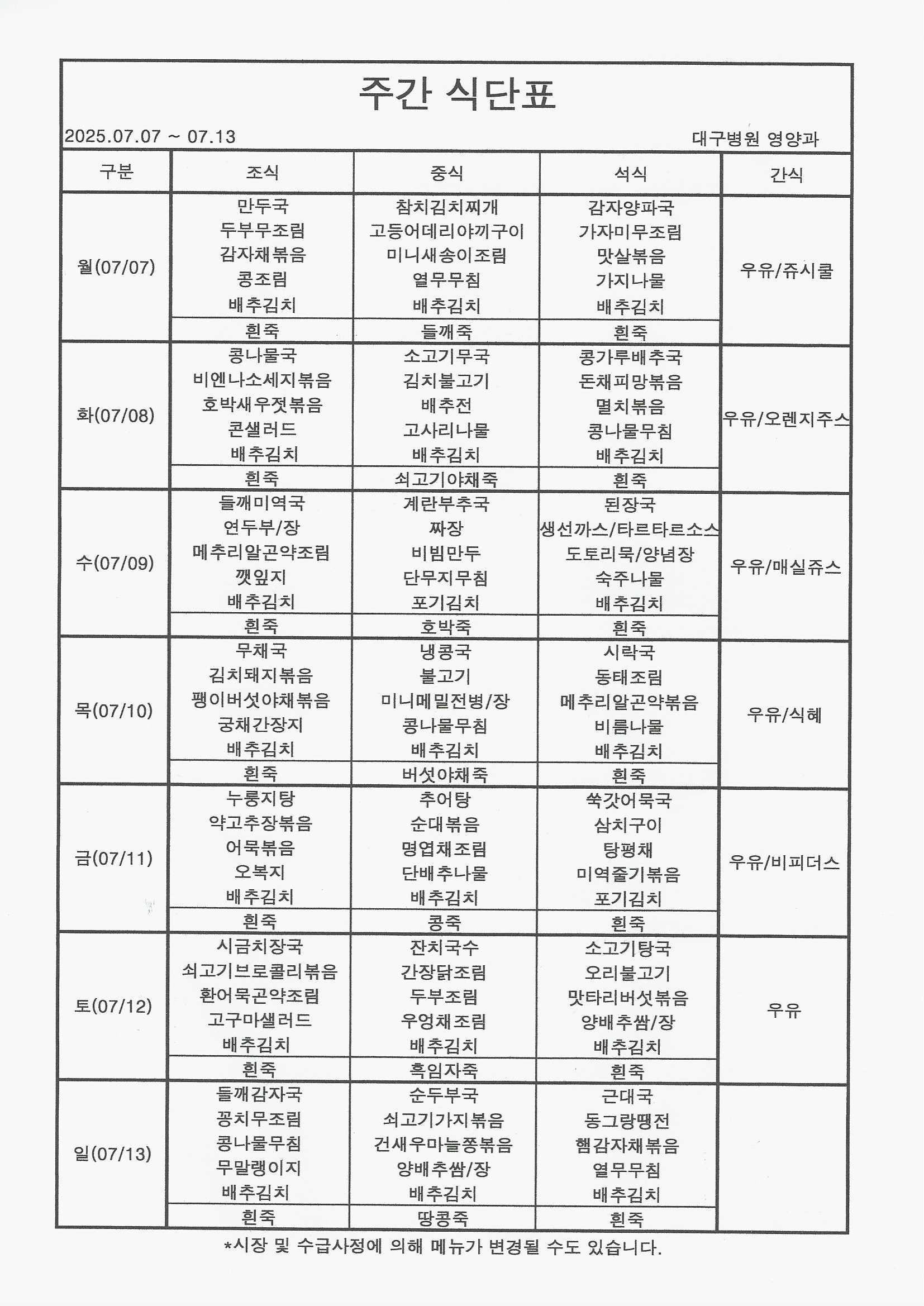 25³â 7/7~7/13 ½Ä´ÜÇ¥