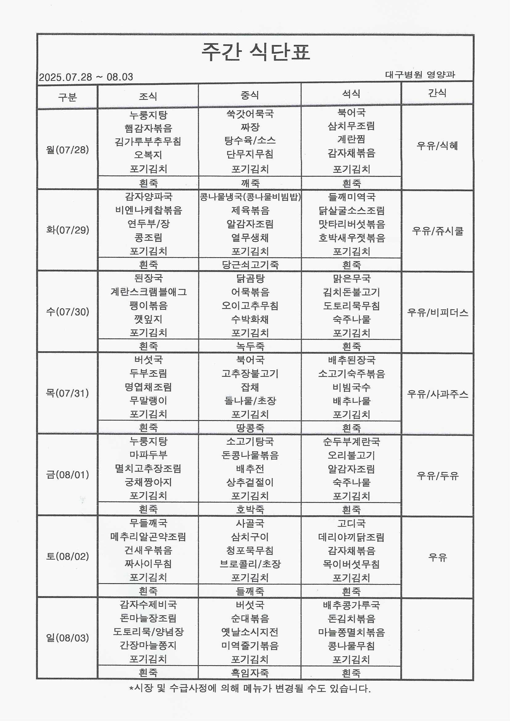 25³â 7/28~8/3 ½Ä´ÜÇ¥