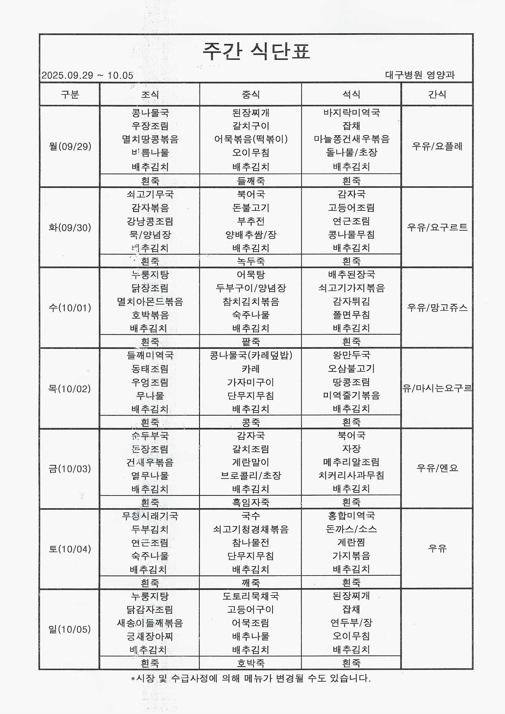 25³â 9/29~10/5 ½Ä´ÜÇ¥