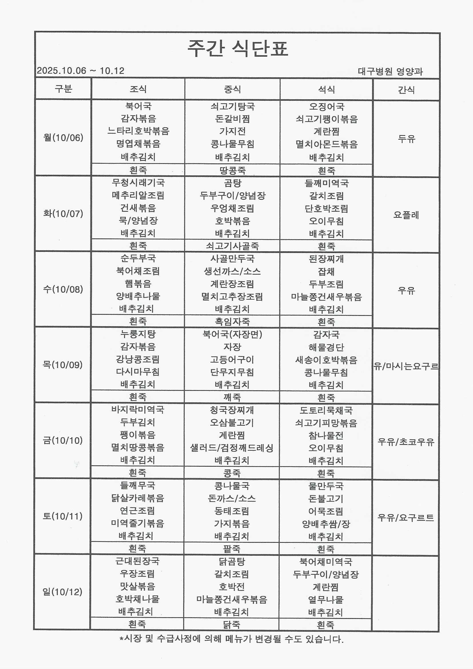 25³â 10/6~10/12 ½Ä´ÜÇ¥