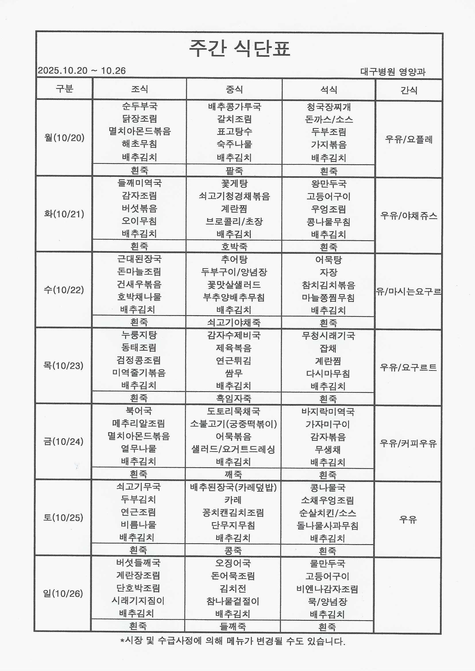 25³â 10/20~10/26 ½Ä´ÜÇ¥