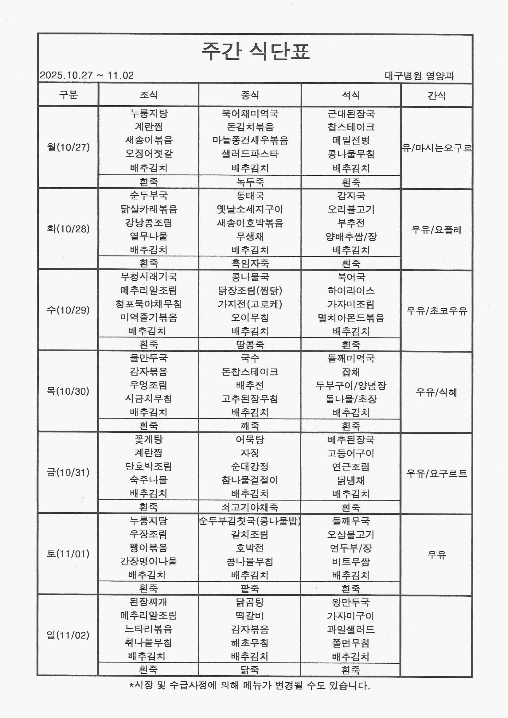 25³â 10/27~11/2 ½Ä´ÜÇ¥
