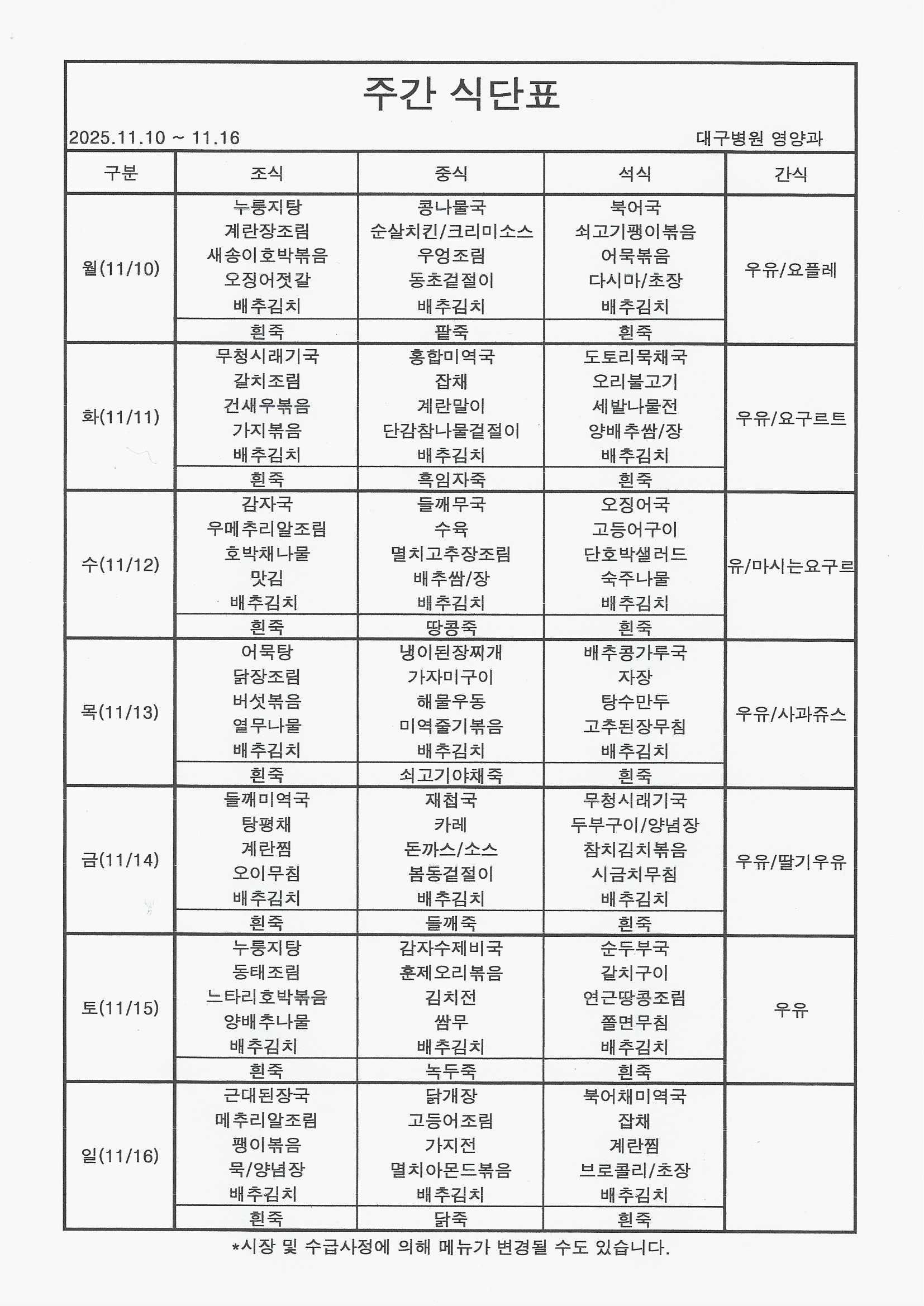 25³â 11/10~11/16 ½Ä´ÜÇ¥