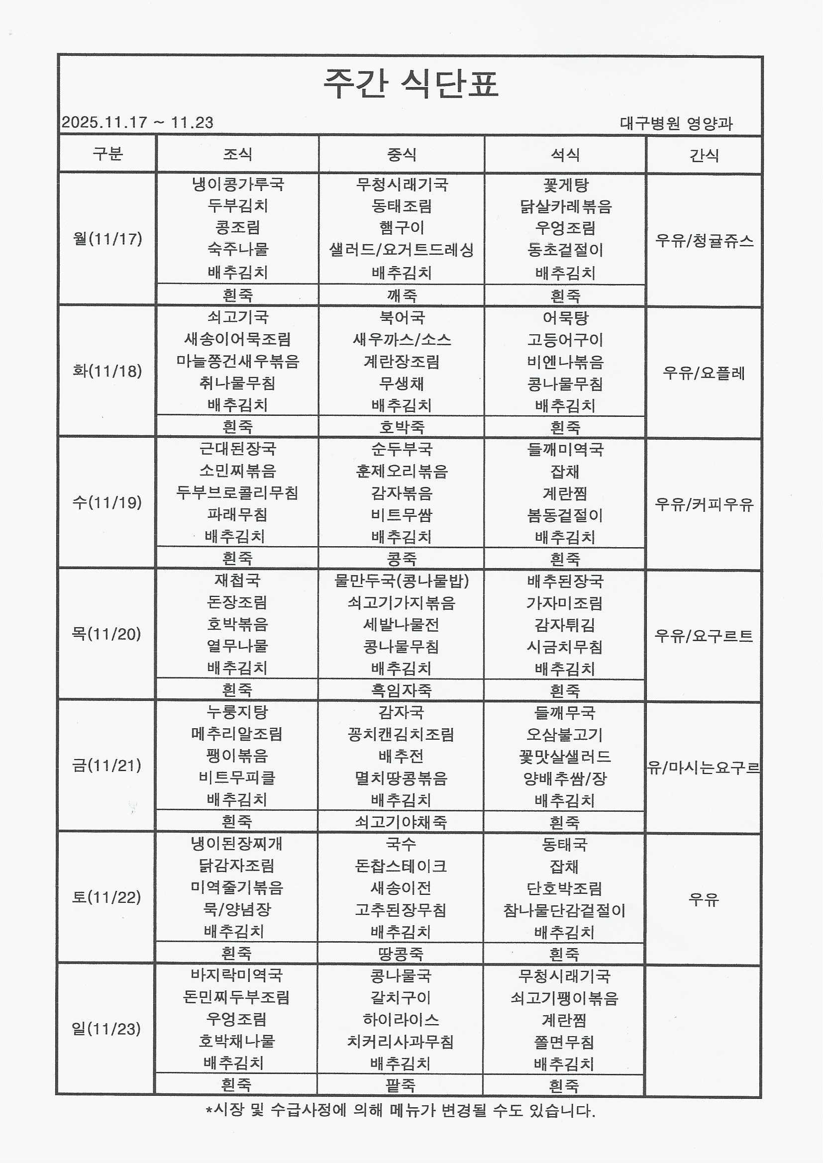 25³â 11/17~11/23 ½Ä´ÜÇ¥