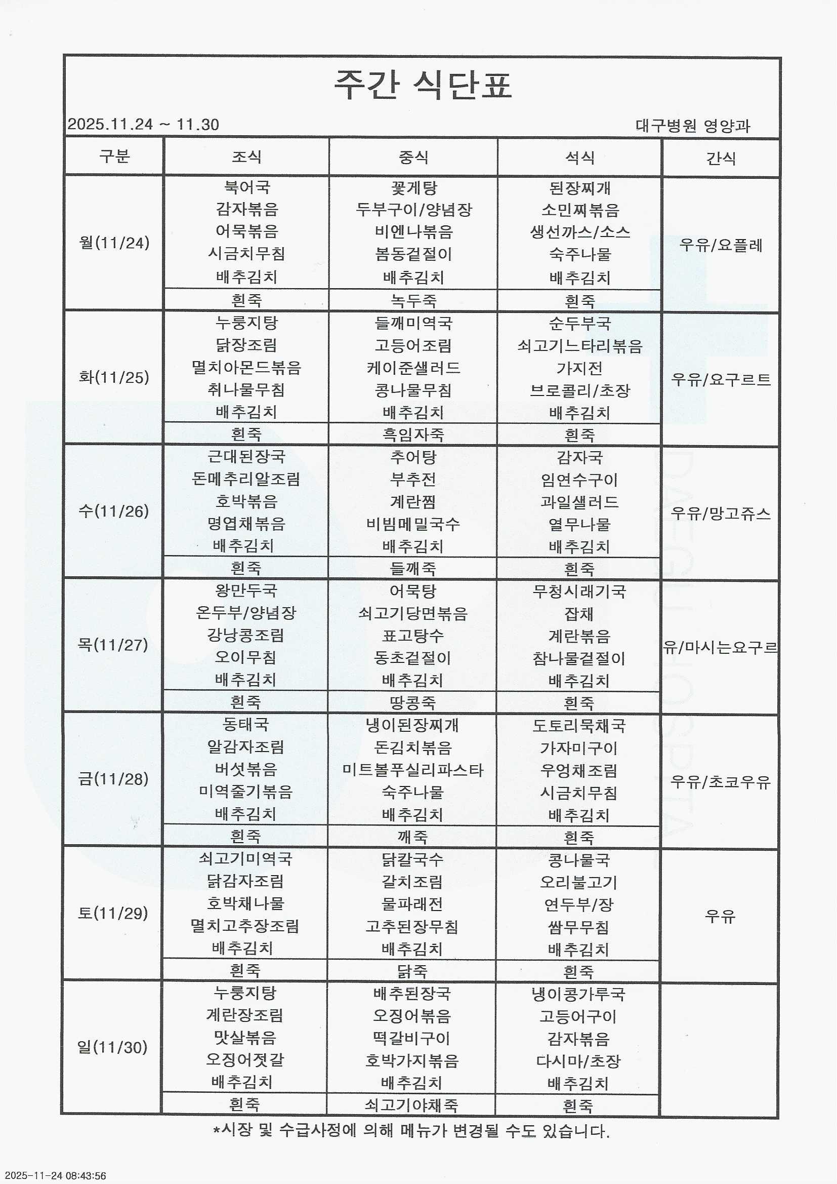 25³â 11/24~11/30 ½Ä´ÜÇ¥