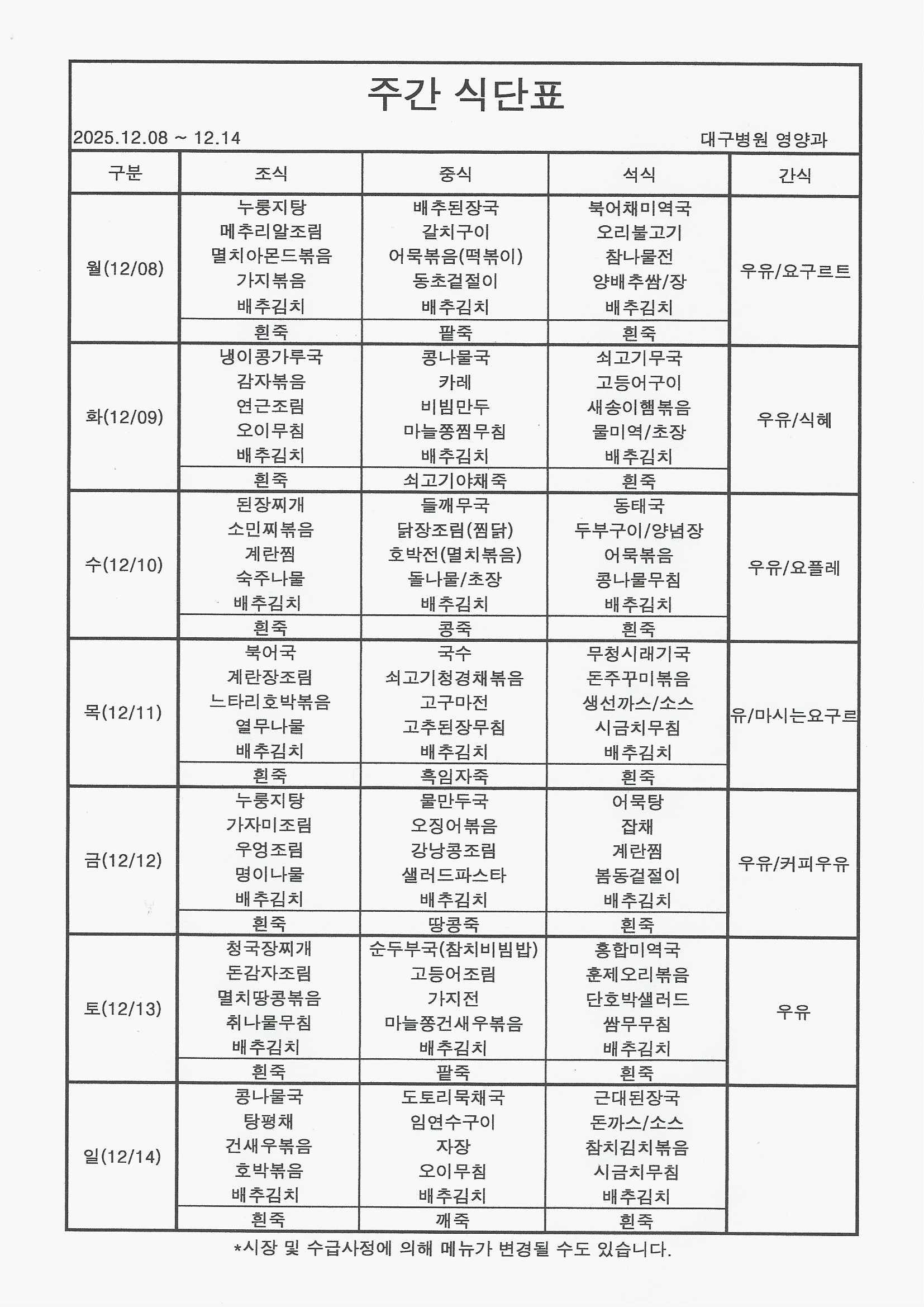 25³â 12/8~12/14 ½Ä´ÜÇ¥