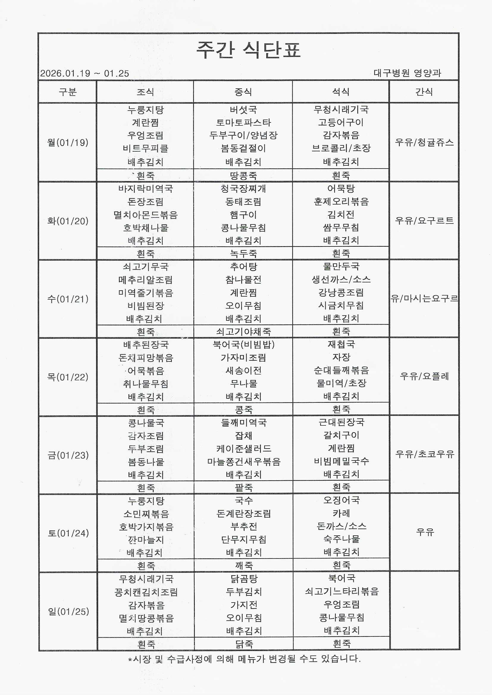 26³â 1/19~1/25 ½Ä´ÜÇ¥